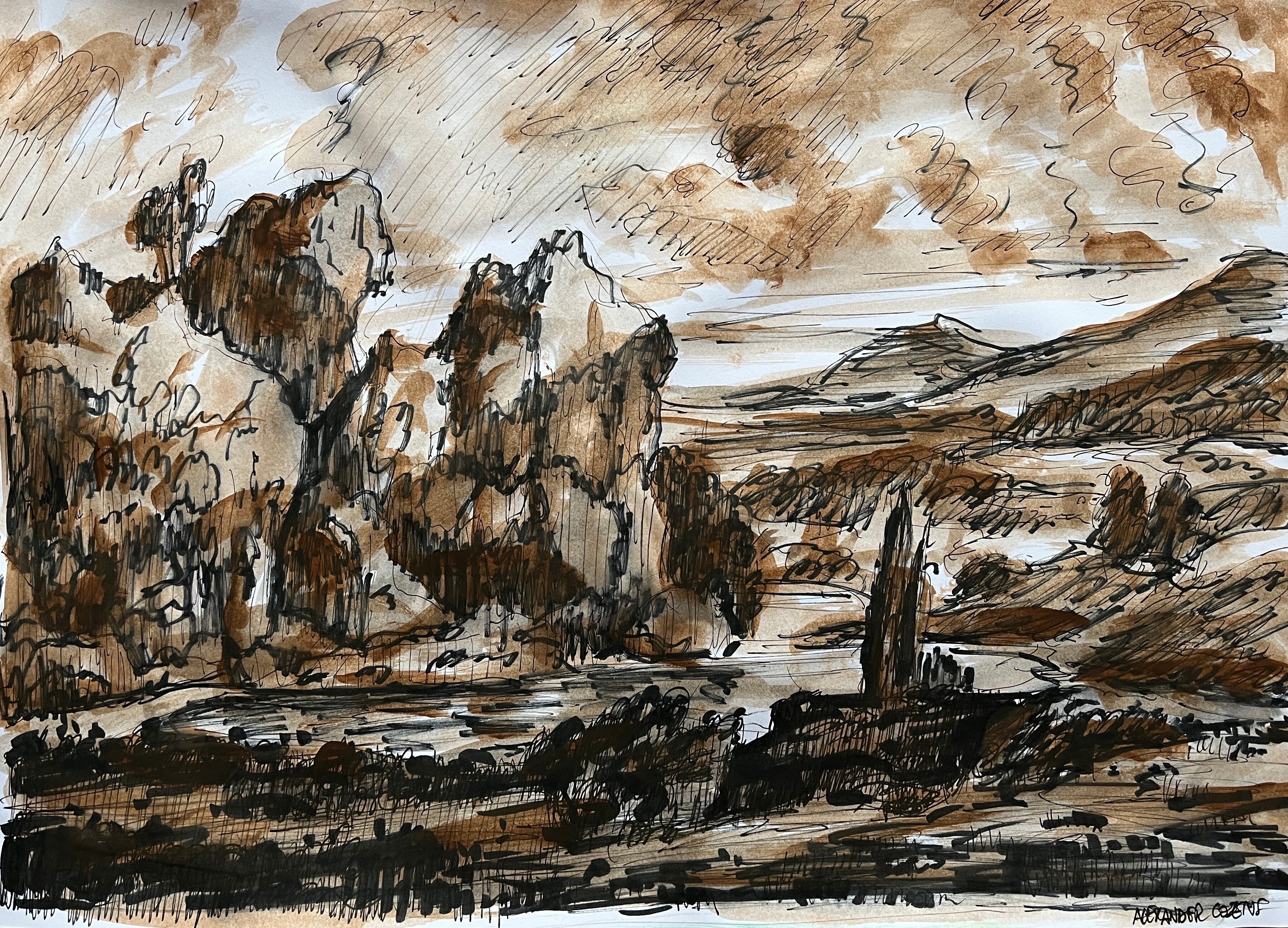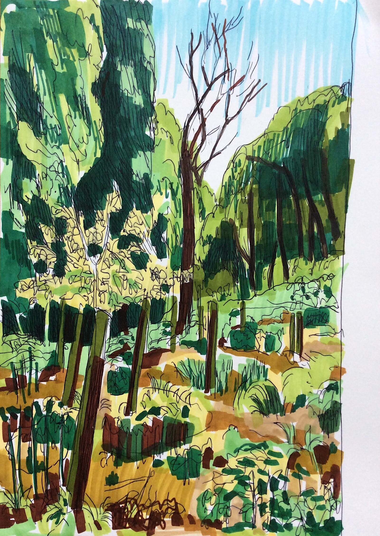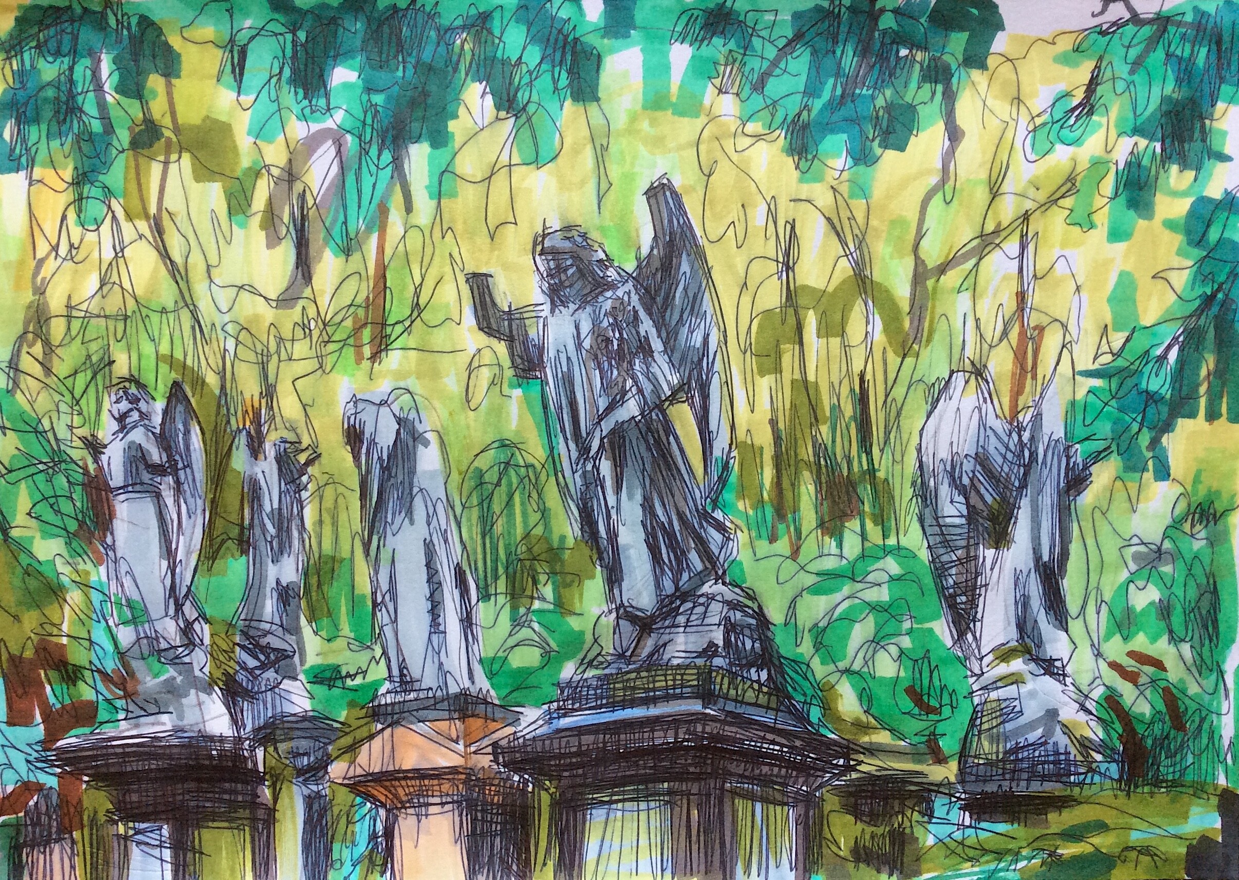 Included here are pastel drawings, both dry pastel and oil pastel. Drawings with markers. Pencil drawings. There are also some linocuts in here.